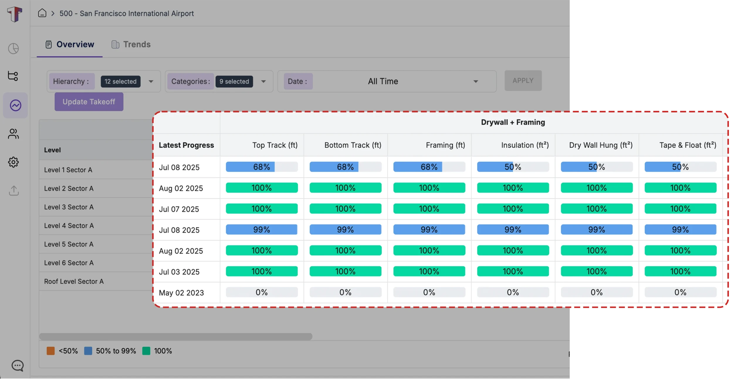 Stop relying on gut feelings and guesswork. Track3D provides accurate and comprehensive progress tracking, quantifying work installed across different job activities from each capture.